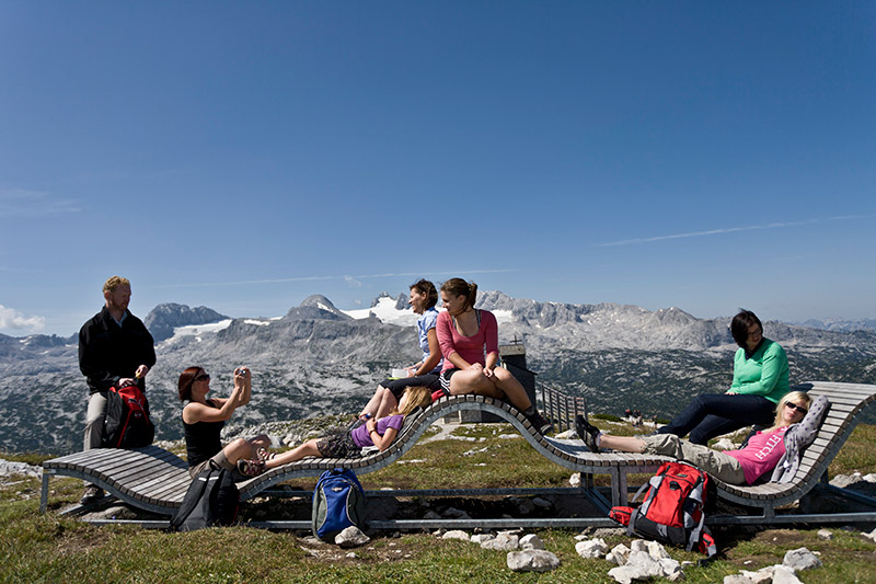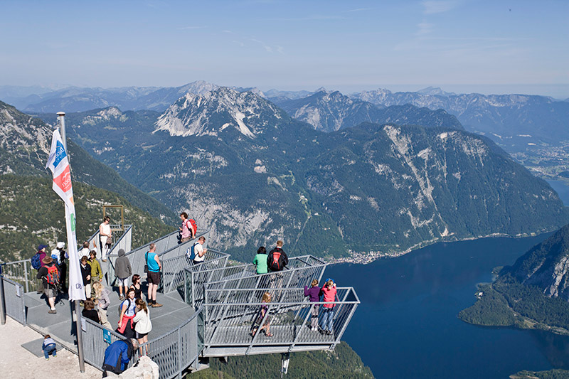 Auf über 2000 m Höhe befindet sich die berühmte 5-Finger-Aussichtsplattform, die sich wie eine Hand über einen 400 Meter tiefen Abgrund erstreckt. Auch der Dachsteinhai sowie die Welterbespirale sind hier zu finden.