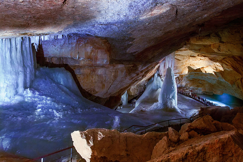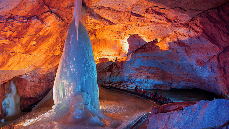 Drei Höhlen (Eishöhle, Mammuthöhle und Koppenbrüllerhöhle) führen Sie in geheimnisvolle unterirdische Welten, die von Wasser und Eis geformt werden. Abenteurer freuen sich auf Trekkingtouren in der Mammut- und Koppenbrüllerhöhle.